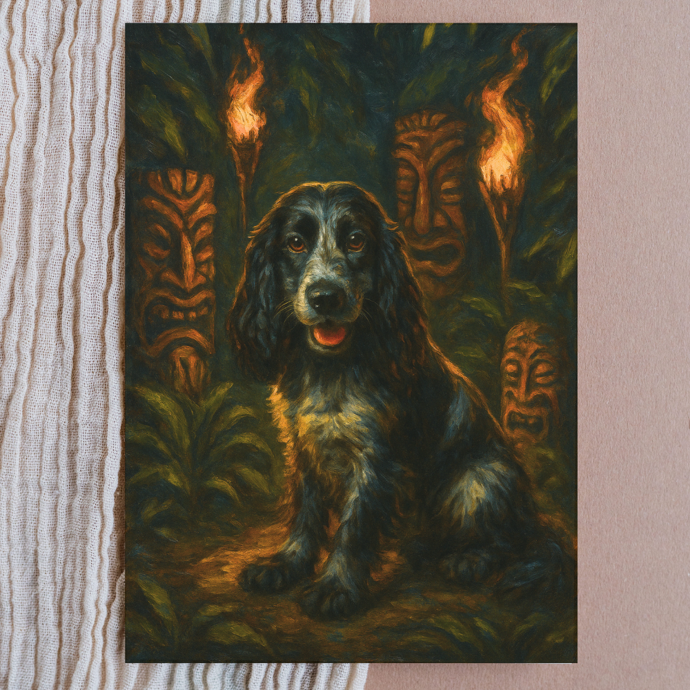 Bring island magic to your home with our Tiki Torches pet portrait collection, featuring both cats and dogs in vibrant, tropical-inspired scenes. Each artwork combines lush greenery, glowing tiki torches, and expressive tiki masks with the charm of your furry friend, creating a piece that feels both exotic and heartwarming.