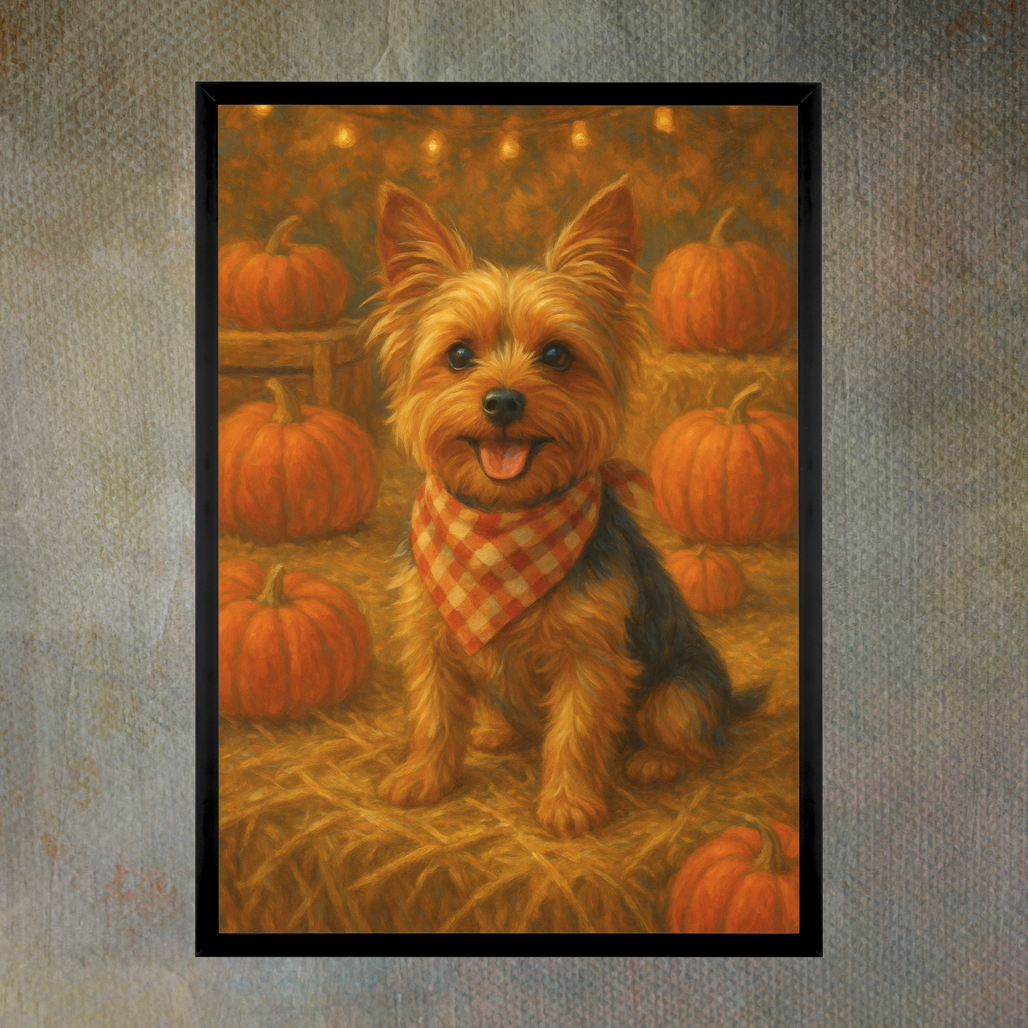 The Pumpkin Patch theme captures the warm, golden glow of autumn with charming rustic details like hay bales, pumpkins, and twinkling string lights. Each portrait transforms your pet into the star of a cozy fall harvest scene, complete with an orange gingham bandana for seasonal flair. The rich tones of orange, gold, and amber highlight your petโs unique features while creating a festive, heartwarming atmosphere. This theme is perfect for celebrating fall memories, Halloween fun, or simply embracing the beauty of the season.